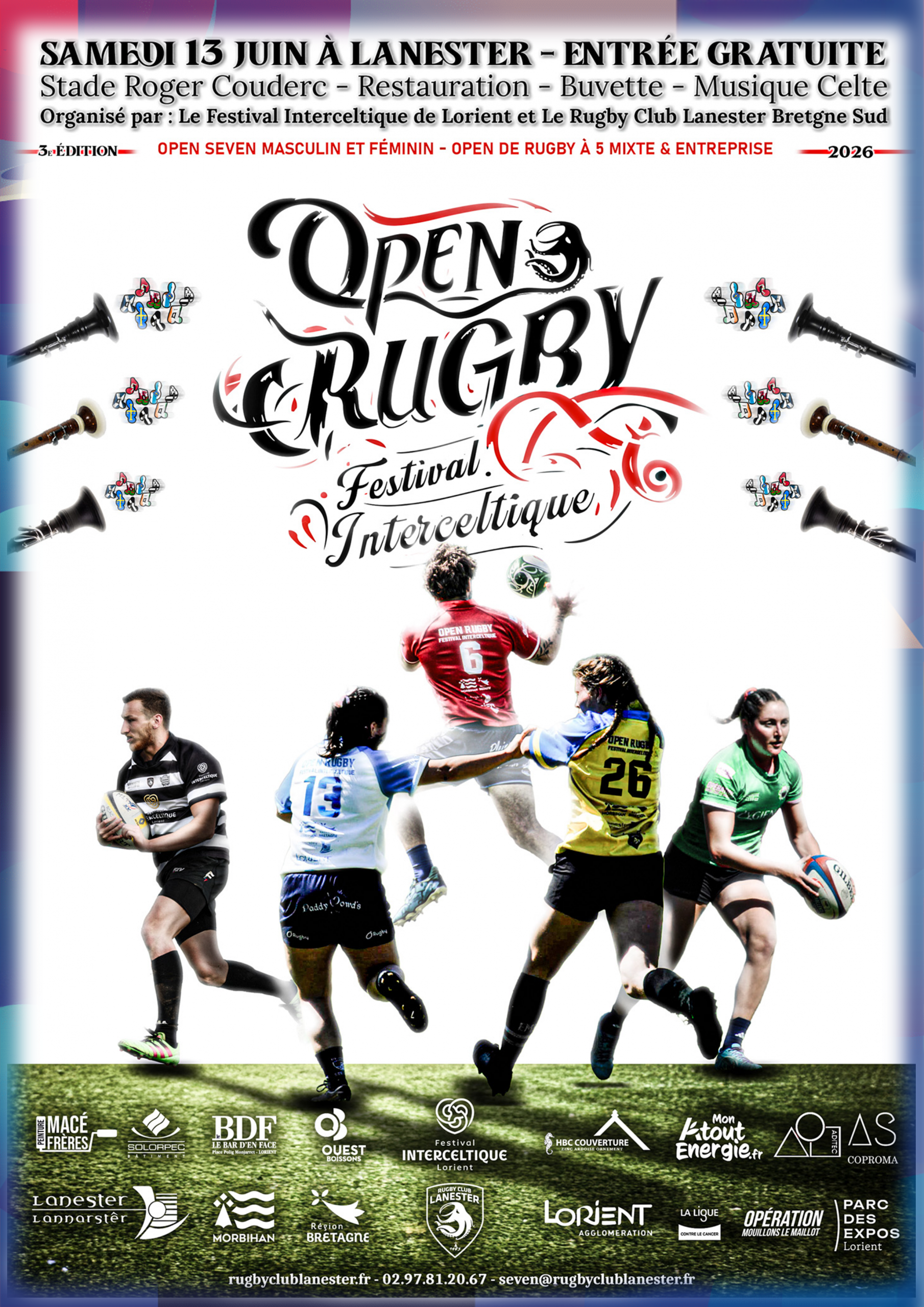Nous organisons également un tournoi de rugby à 7 « l’Open Rugby Festival Interceltique », en partenariat avec le Festival Interceltique de Lorient, symbole de notre volonté de croiser sport, culture et identité bretonne.